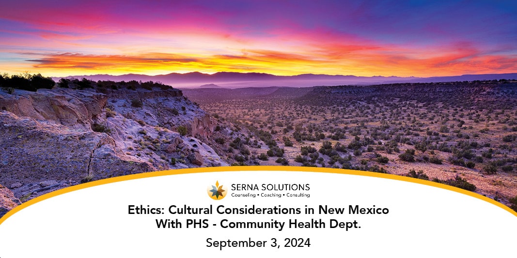 Presbyterian Healthcare Services – Community Health Department and Serna Solutions are partnering to provide this important training service on Health Equity. This online training is focused on Northern New Mexico – the confluence of cultural exchange since time immemorial. This workshop will give participants an opportunity to explore how multiple waves of colonization have impacted issues that affect clients today. Experiential exercises will provide participants with insights into historical trauma, applied attachment theory, and cross-cultural counseling competencies. A working camera and microphone are required for this training, and the training will include a 1HR (MST) noon lunch break. (6 CEUs)